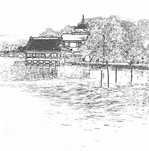 若の浦にの歌碑 玉津島賛歌の歌碑 この時代紀ノ川の河口は、大きく和歌浦湾に注いでいて、(今の和歌川河口)現在の何倍ものスケールの干潟が広がっていました。そして潮が満ちると六つの玉のような小島が連なって海に浮かぶ、それが玉津島です。今それらの島は、妹背山、奠供山、鏡山雲蓋山、妙見山、船頭山と呼ばれ、スケッチの妹背山だけを海上に残して陸地となっています。この“若の浦”は平安時代になると“和歌の浦”と呼ばれるようになり、和歌の歌枕の代表的な地として都人たちのロマンを掻き立ててきました。 スケッチの観海閣、多宝塔は、初代紀州徳川藩主頼信が建てたもので、母の霊を多宝塔に拝んだのち、観海閣から紀三井寺を遥拝したと云います。(和歌浦せんべいにもありますよね)なお、観海閣は昭和36年の台風で倒壊し、その後再建されたコンクリート製のものです悪しからず