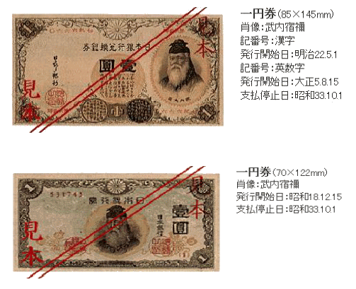 そのため、戦前発行の紙幣には武内宿禰がしばしば図案として用いられた。