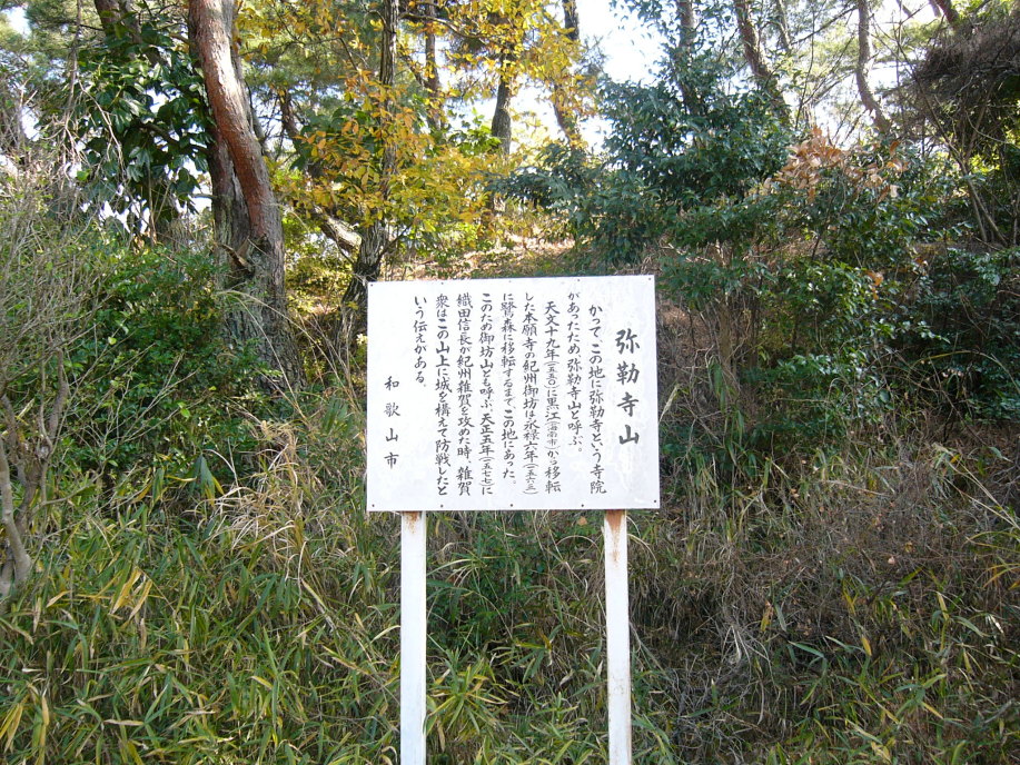 対する孫一ら雑賀衆は和歌浦の妙見山城(南消防署の裏の小高い丘)を拠点に、弥勒寺山城(秋葉山)に部隊の主力を結集して、雑賀川(和歌川)を挟んで対峙しました。
